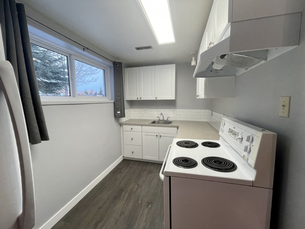 Renovated two bedroom lower suite with new kitchen and new flooring.