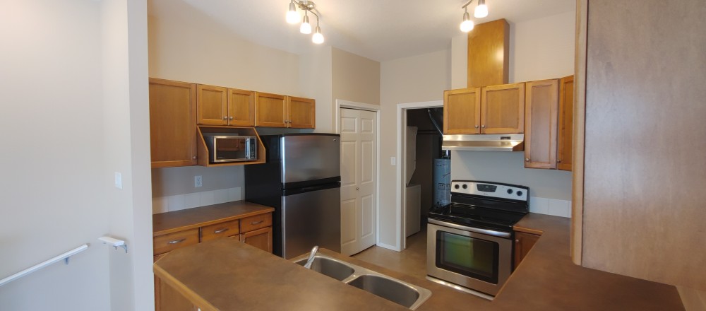 Cute as a button. This cozy condo will welcome you to two bedrooms, a beautiful kitchen with a breakfast bar. In-unit laundry and a balcony to soak up the sun. Natural gas line for BBQ (no propane allowed) 1 parking stall. Perfect for single person, couple or two roommates going to University. All commercial ameneties near by. No pets. Utilities not included.Not quite right, here's more you might like...